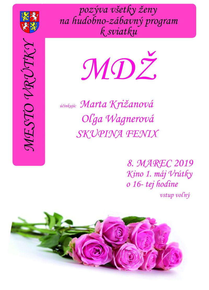 Pozývame všetky ženy na Hudobno - zábavný program pri príležitosti sviatku MDŽ, ktorý sa uskutoční v Kine 1. máj v piatok 8. marca 2019 o 16:00 hod. Bližšie informácie prinášame v priloženom
