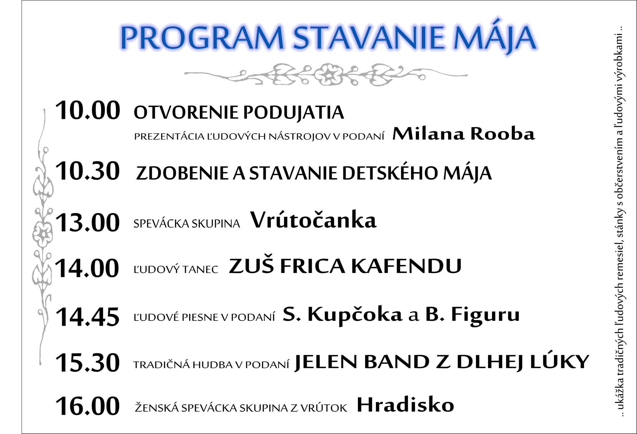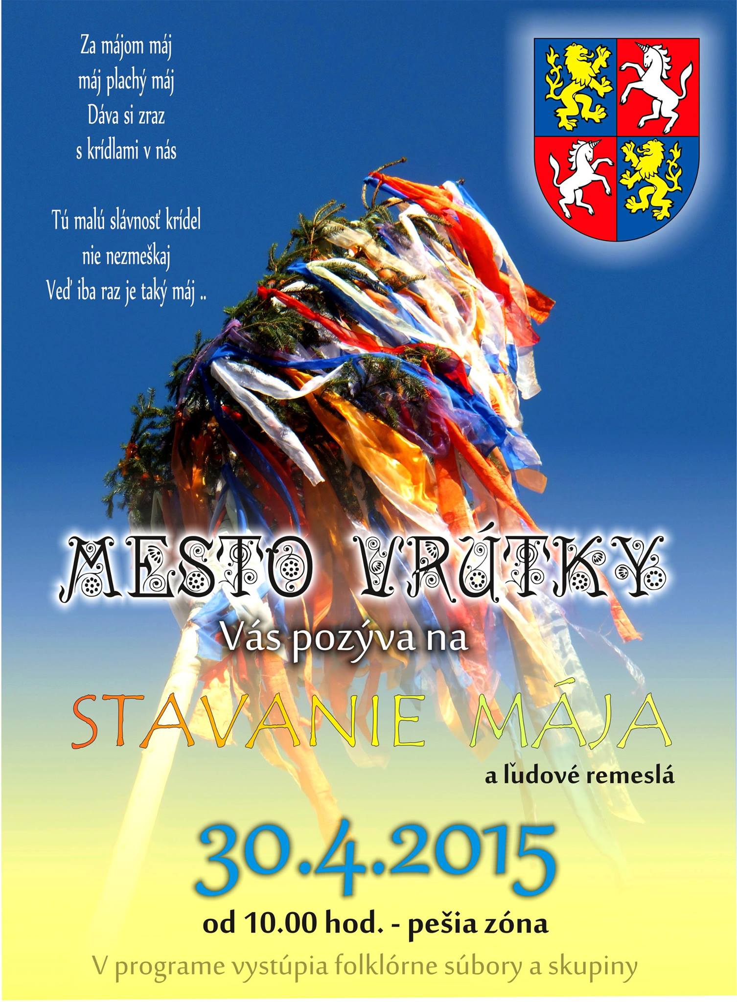 Mesto Vrútky Vás pozýva na STAVANIE MÁJA spojené s predajnými trhmi, prezentáciou ľudových remesiel a kultúrnym programom vo štvrtok 30. apríla 2015 od 10.00 hod. na pešej zóne vo Vrútkach.