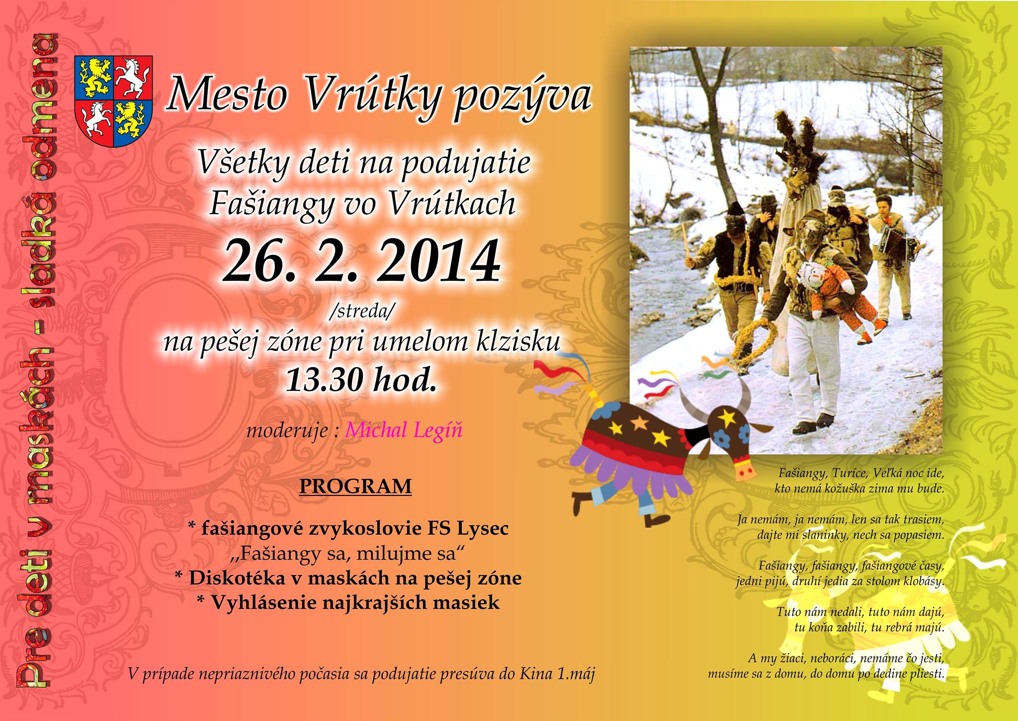 Mesto Vrútky Vás pozýva na podujatie Fašiangy vo Vrútkach