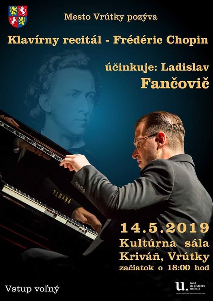 6. Máj, 2019 | pridal adminMesto Vrútky Vás pozýva na Klavírny recitál Ladislava Fančoviča, ktorý sa uskutoční 14. mája 2019 v Kultúrnej sále Kriváň. Bližšie informácie si môžete pozrieť v priloženom plagáte.