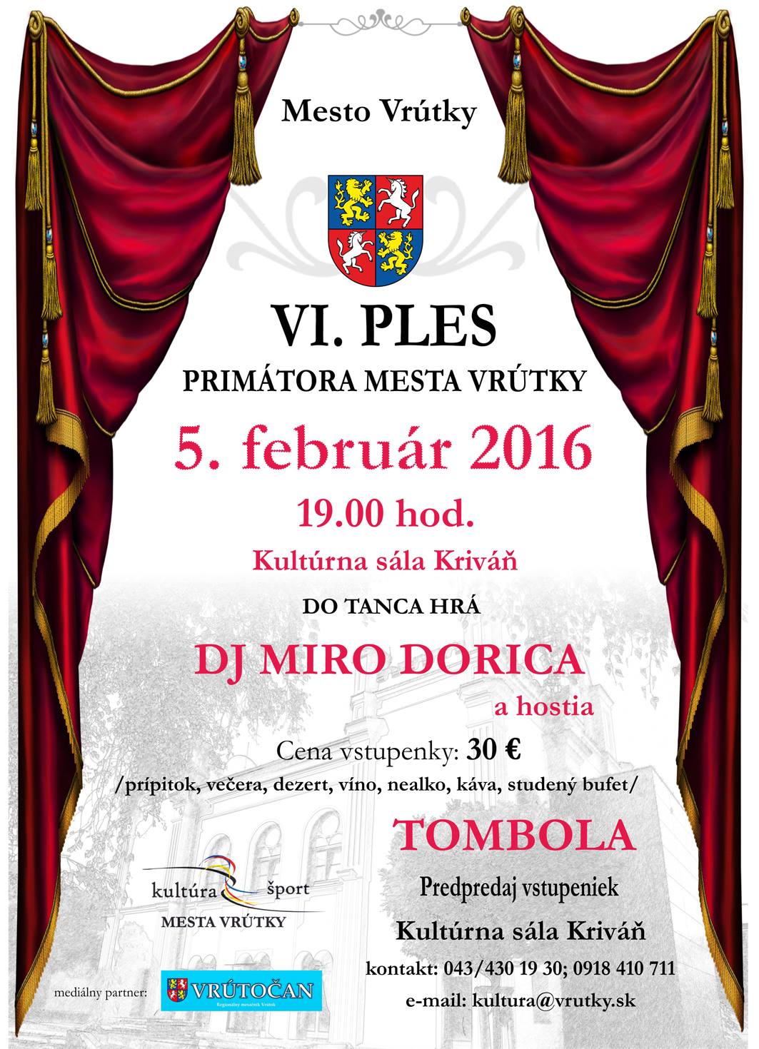 Primátor mesta Vás pozýva na VI. Ples primátora mesta Vrútky, ktorý sa uskutoční v piatok 5. februára 2016 v kultúrnej sále Kriváň so začiatkom o 19. hod.