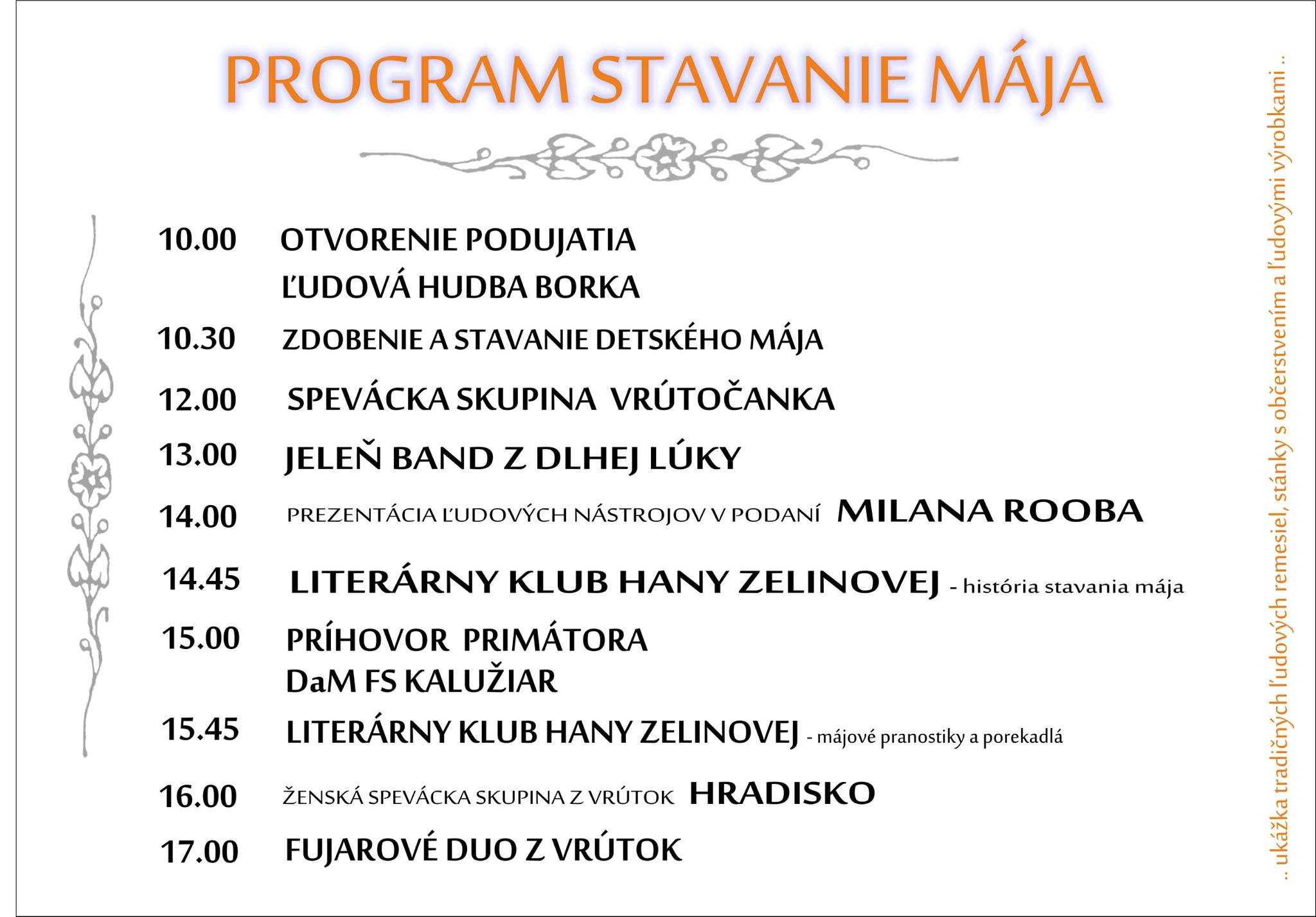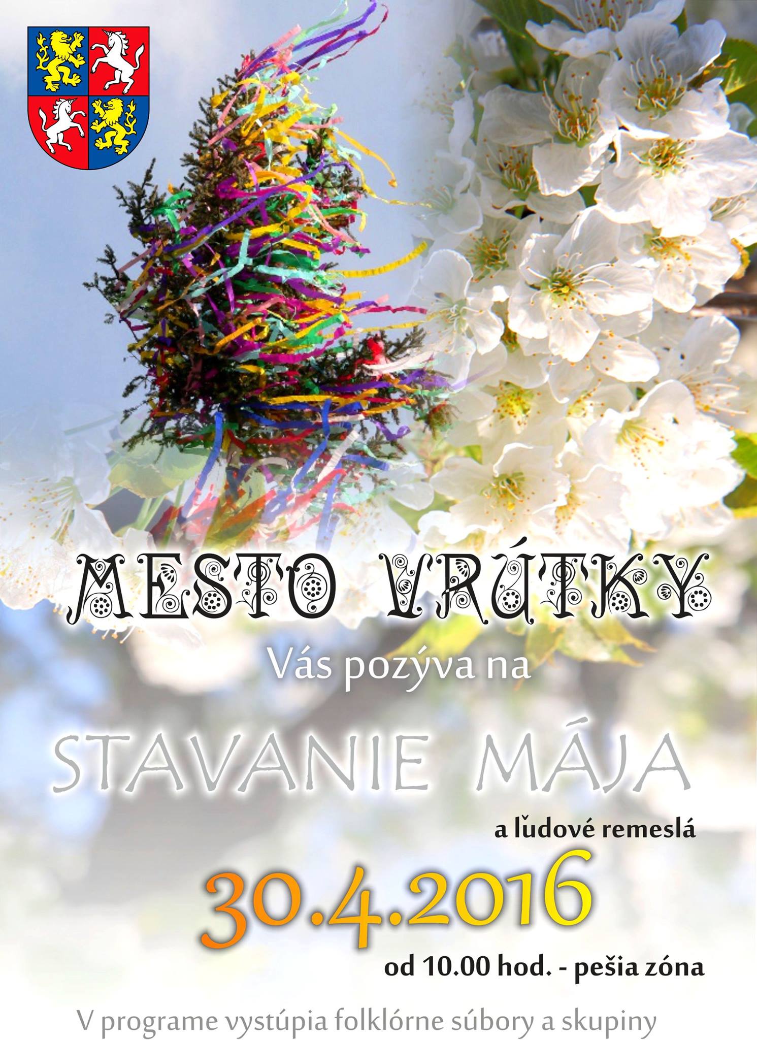 Mesto Vrútky Vás pozýva na STAVANIE MÁJA spojené s predajnými trhmi, prezentáciou ľudových remesiel a kultúrnym programom v sobotu 30. apríla 2016 od 10.00 hod. na pešej zóne vo Vrútkach.