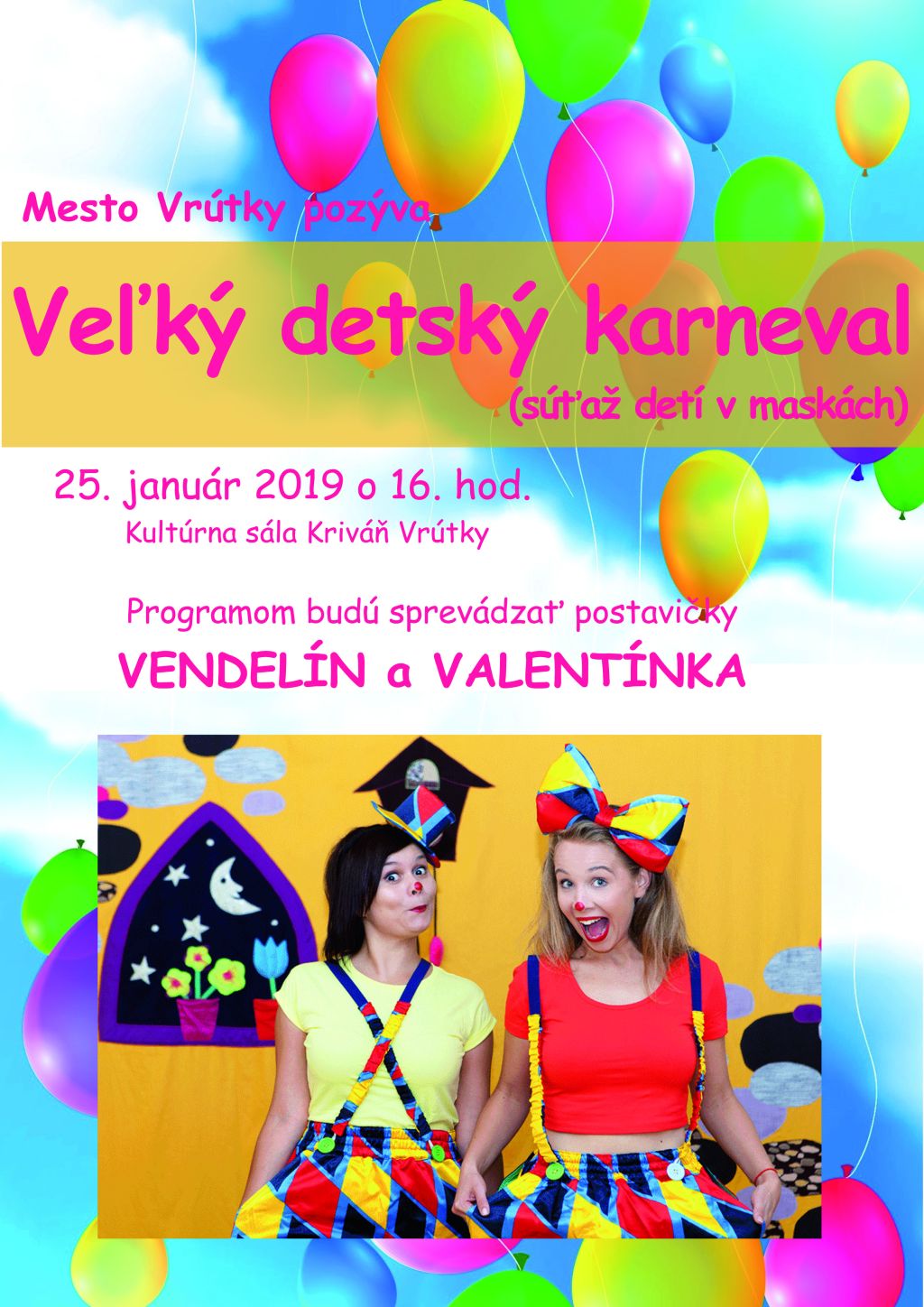 24. Január, 2019 | pridal adminMesto Vrútky pozýva všetky deti na Veľký detský karneval (súťaž detí v maskách), ktorý sa uskutoční v piatok 25. januára 2019 v Kultúrnej sále Kriváň. Viac informácií si môžete prečítať na priloženom plagáte.