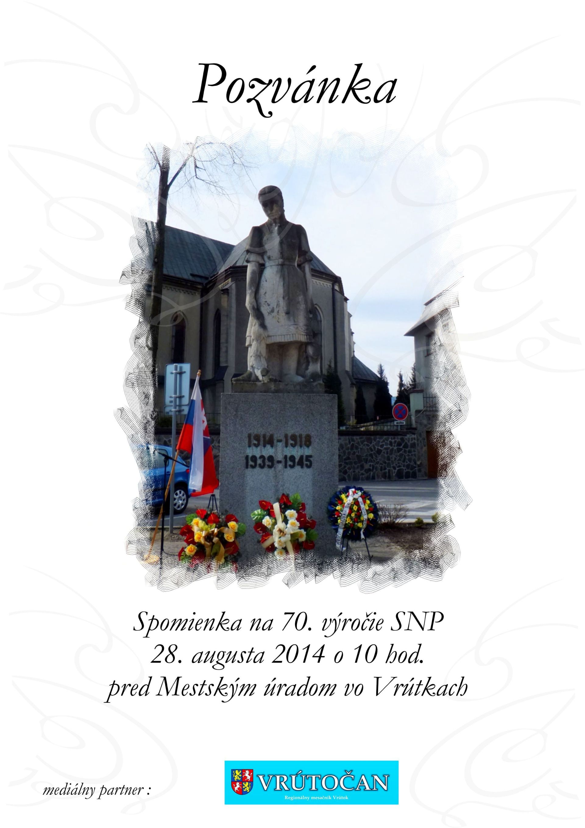 Mesto Vrútky Vás pozýva 28. augusta 2014 na spomienku 70. výročia SNP