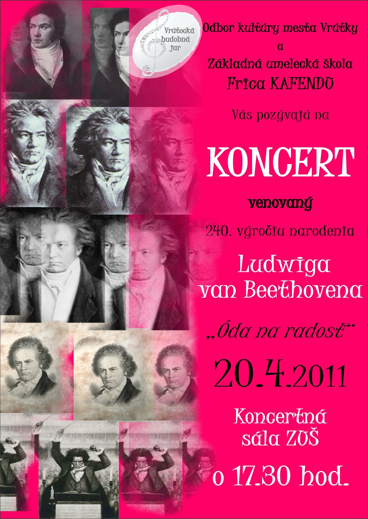 240. výročiu narodenia Ludwiga van Beethovena "Óda na radosť", ktorý sa uskutoční v koncertnej sále ZUŠ vo Vrútkach.