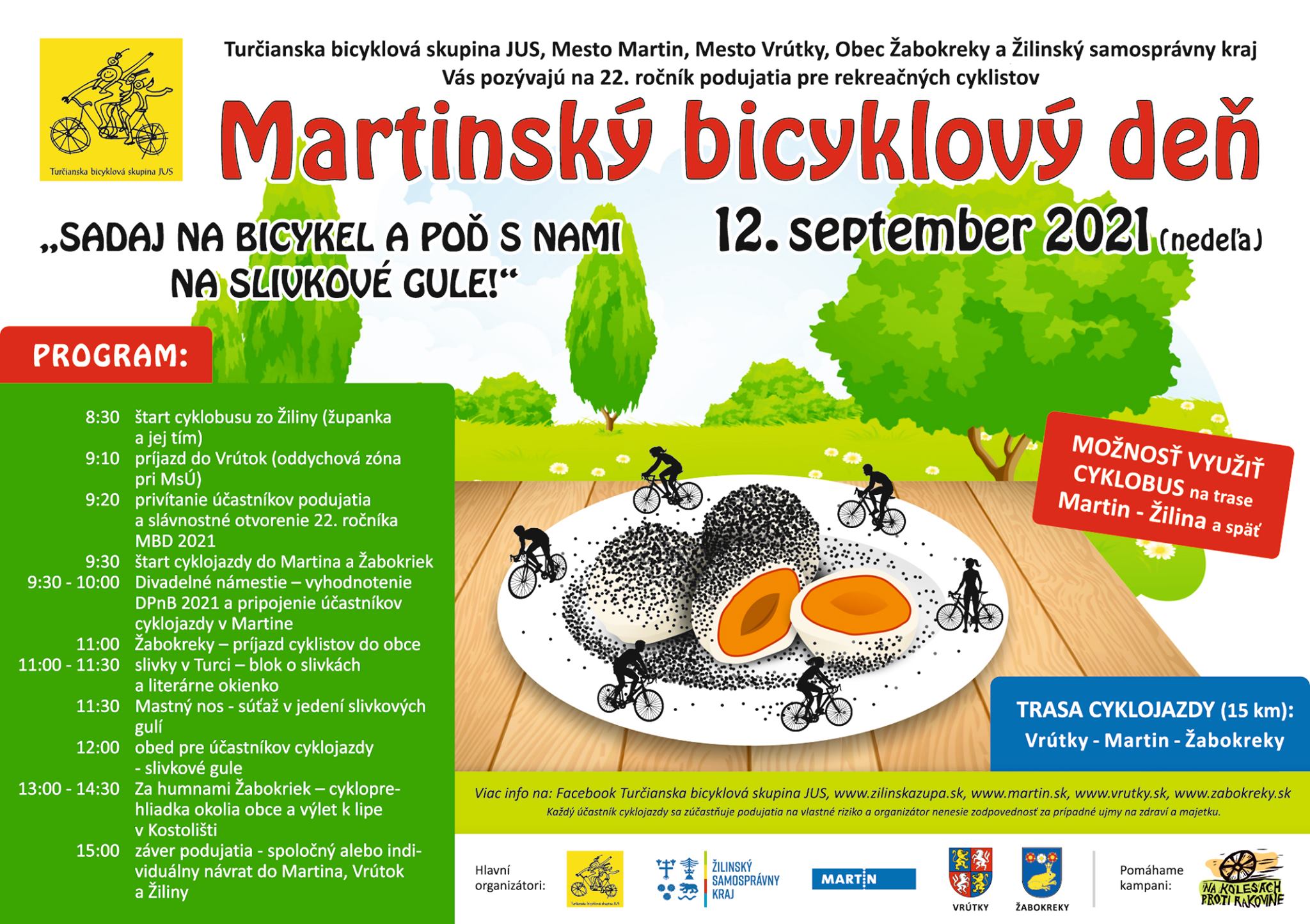 Program tohtoročných osláv Dní mesta Vám prinášame v priloženom plagáte. Srdečne Vás pozývame aj na všetky sprievodné podujatia: Študuj dopravu, Výstavu ovocia, zeleniny, kvetov, kaktusov a včelárstva, ale taktiež Jazdy historickým vlakom a Martinský bicyklový deň.